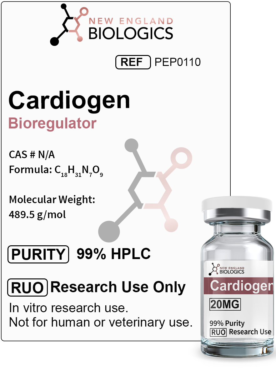 Studies using fluorescence quenching analysis reveal that Cardiogen binds to histone proteins H1, H2B, H3, and H4 in the N-terminal regions containing peptide-binding motifs. This interaction influences chromatin structure and gene accessibility, functioning as an epigenetic regulatory mechanism. The peptide's ability to modulate histone-DNA complexes enables it to influence which genes are expressed or repressed, providing a molecular explanation for its tissue-specific biological effects.